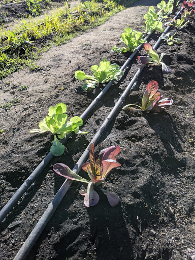 => We use drip irrigation to reduce water and fertilizer usage, prevent plant disease and soil erosion, as well as limit weed growth. Drip irrigation systems can be up to 90% efficient by preventing runoff and evaporation.